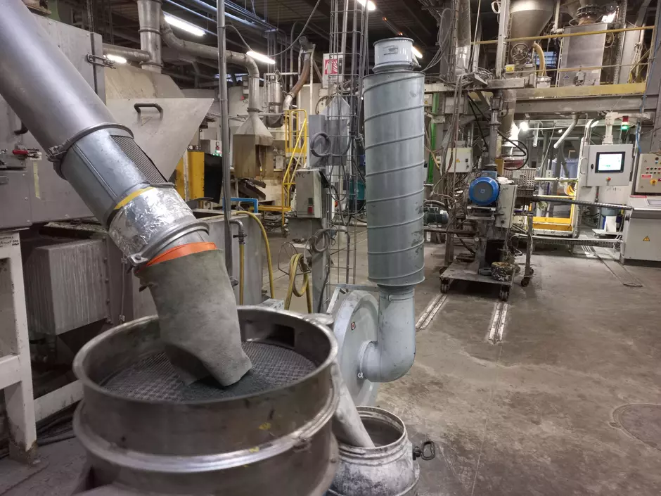 The small colored balls return to their storage silo while waiting to be put in big bags or in tank trucks.