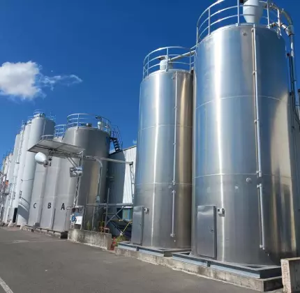 After passing through a homogenization silo, the material is evacuated through a network of pipes to a silo for storage.
